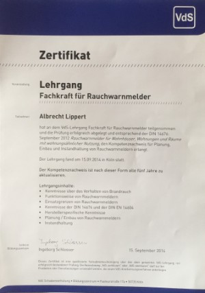 sind ein VDS -zertifizierter Betrieb nach DIN14676
